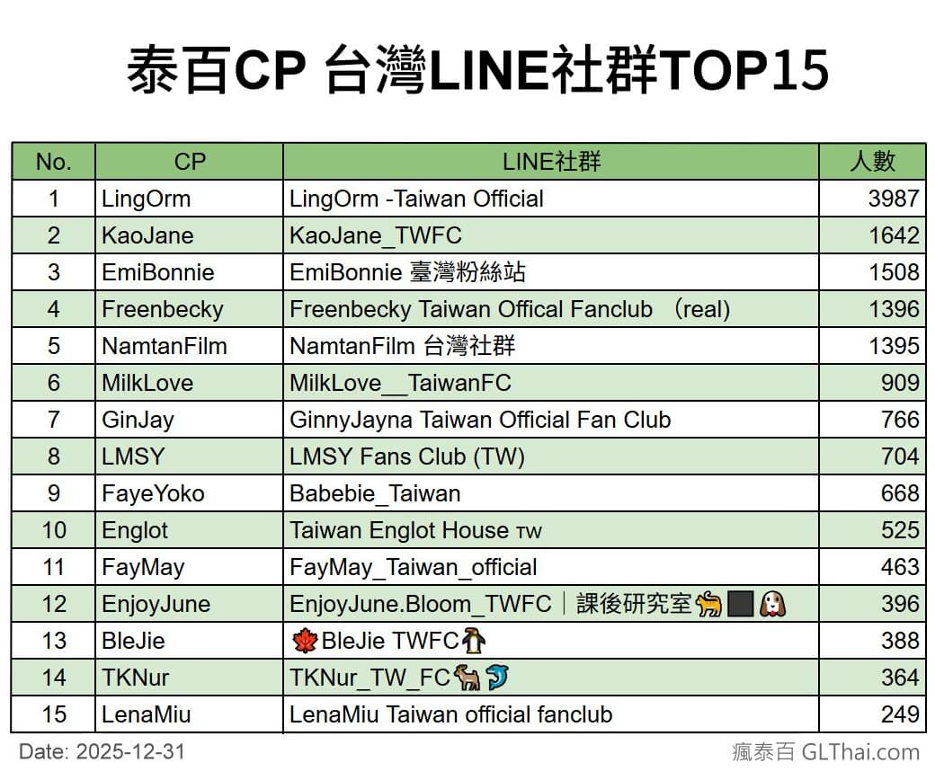 【2025泰百回顧 5 】CP 台灣LINE社群人數排行榜TOP15,LingOrm斷層式第一 (附入群申請網址)