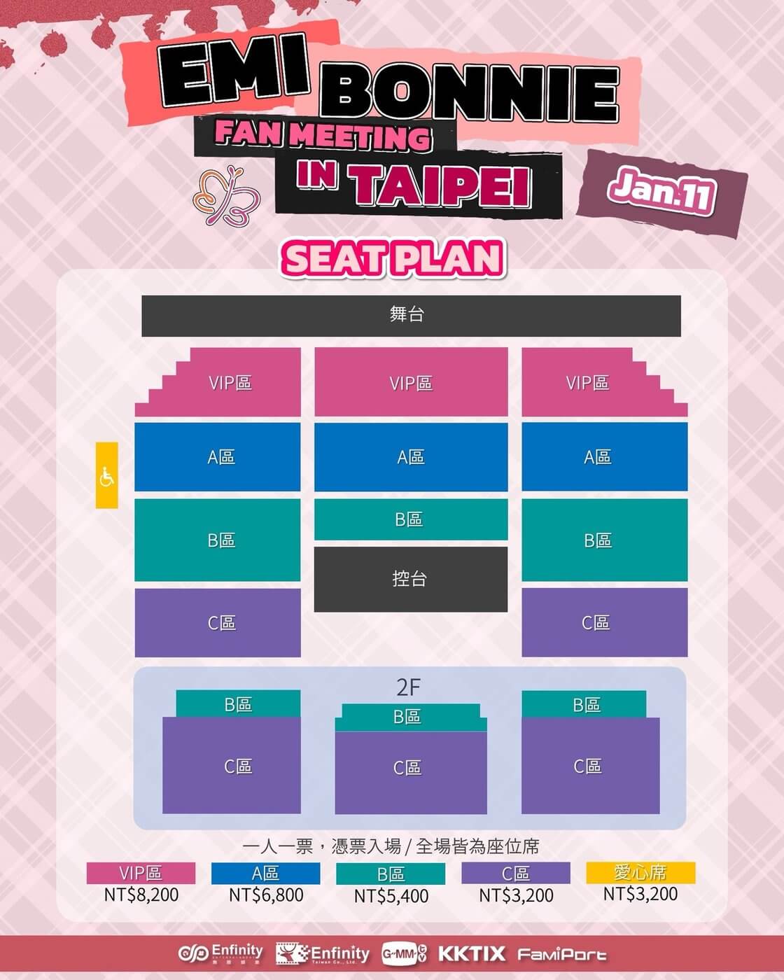 🎟 票價及粉絲福利 (全區對號入座):