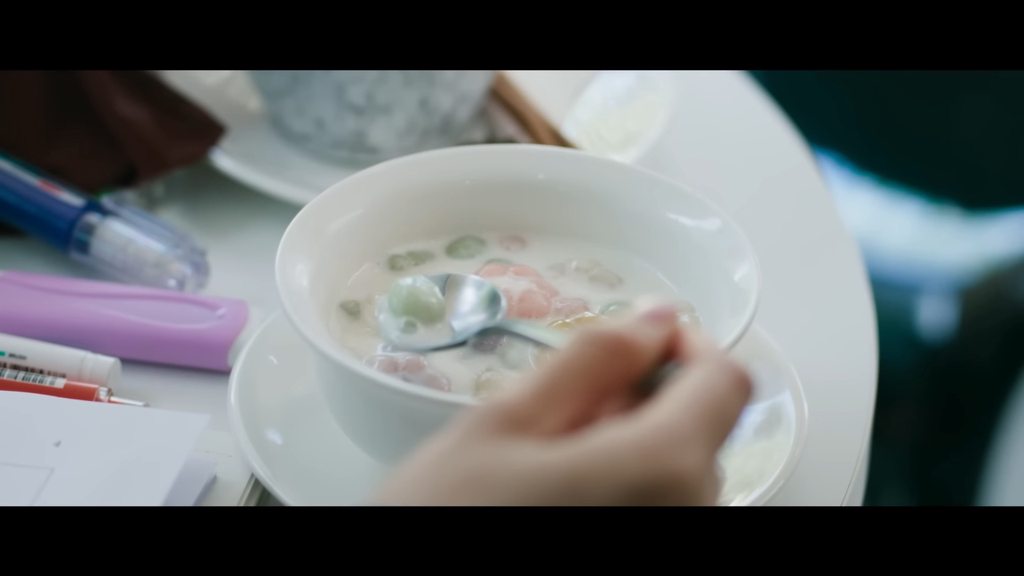 這集介紹了一個滿常見的泰式點心Bua Loy(或作Bua Loi) ,比較常見的翻譯就是泰式椰奶湯圓,在劇中會看到有多種色彩非常好看