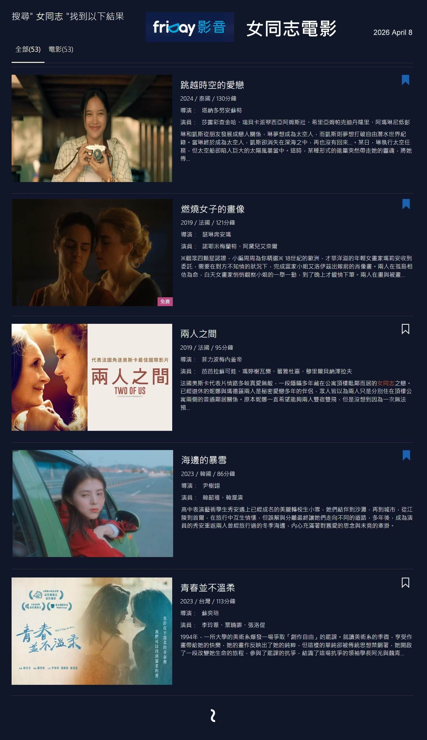 Friday 也有《善意的競爭》,如果喜歡看女同志電影, 還有《燃燒女子的畫像》等53部作品可觀看。