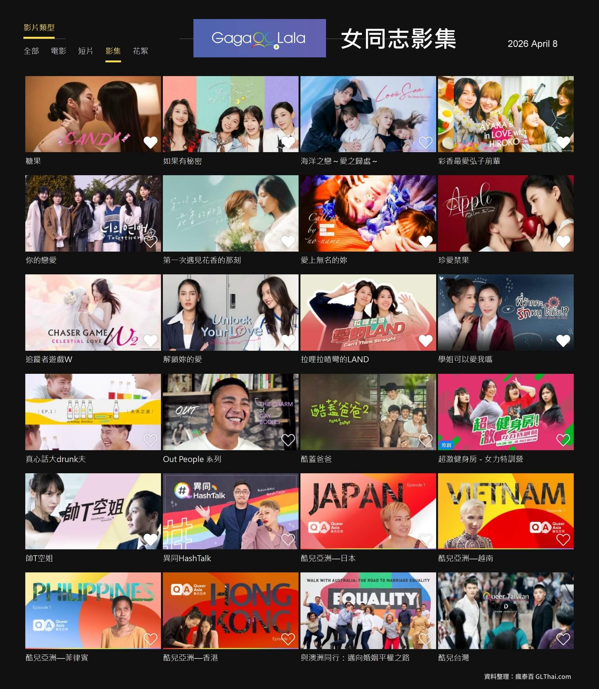 這個影音平台專門提供女同志與男同志作品,目前有11部泰百(含電影與短劇),以及日百、台百、韓百、中百作品。