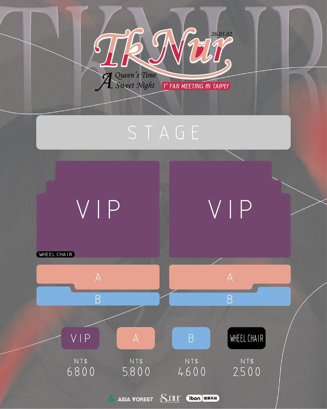 VIP $6800 | A區 $5800 | B區 $4600 | 身障席 $2500
